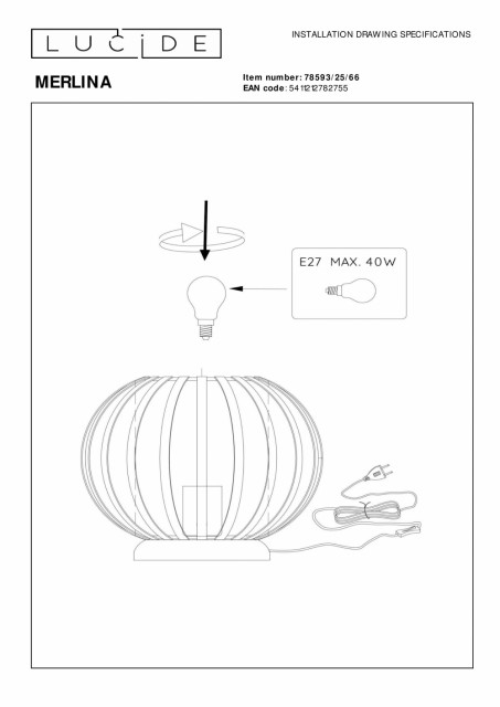 Leter du etter et morsomt og funksjonelt tillegg til barnerommet? Merlina er løsningen for deg som elsker et lekent, moderne design og et hav av atmosfære. Metallet av høy kvalitet forbedrer det moderne bildet. Denne sfæriske bordlampen har en diameter på 25,5 centimeter og er spesielt designet for sikker bruk på sønnens eller datterens rom. Plasser Merlina på nattbordet, på garderoben eller på skrivebordet som en stemningssetter. Du betjener denne bordlampen via av/på-bryteren i ledningen. Håndbok: https://www.lucide.com/ftp/manual/77974-20-17_manual.pdf
