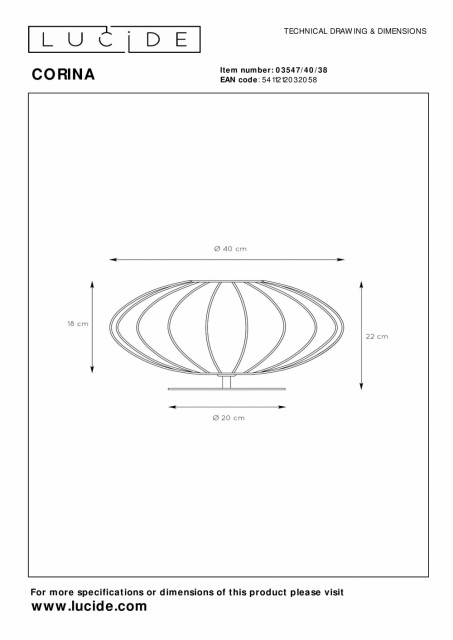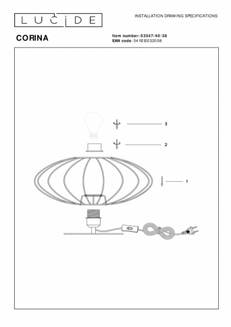Vil du gjøre et fantastisk uttrykk med belysningen din? Corina vil garantert stjele rampelyset. Denne elegante bordlampen er upåklagelig ferdig i et stoff av høy kvalitet som gir den en atmosfære av mystikk. Med en diameter på 40 centimeter er denne lampen en sikker vinner, enten den brukes til å lyse opp et koselig hjørne i stuen, trekke oppmerksomhet til skjenken eller fungere som en ledsager ved sengen på soverommet. Den tidløse metallbasen, som er 12 centimeter lang, gir et snev av moderne stil til det generelle designet. Kreativ, leken og lidenskapelig, Corina vil være den skinnende stjernen i rommet. Håndbok: https://www.lucide.com/ftp/manual/03547-40-38_manual.pdf