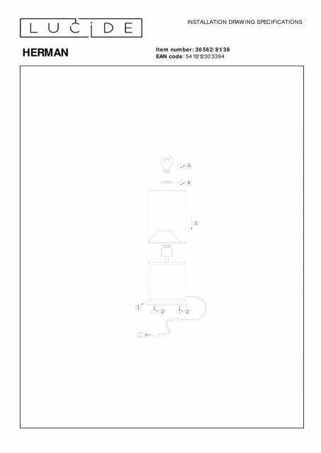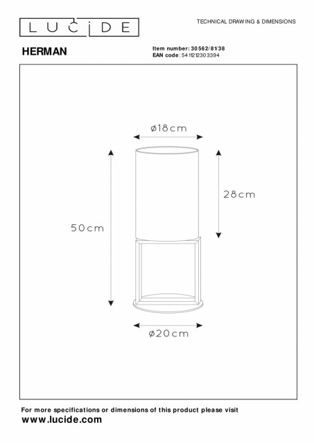 Har du møtt Herman? Han er alltid rolig og fattet. Han liker å holde deg med selskap uten å være påtrengende. Hans tilstedeværelse kan være subtil, men hans fravær merkes umiddelbart. Denne elegante bordlampen er laget av stål og bomull av høy kvalitet, fordi Herman også bryr seg om bærekraft. Du kan enkelt slå lampen av og på med bryteren på kabelen. Med sine runde og kantete former er Herman litt uforutsigbar og litt mystisk, noe som gjør den til det perfekte tillegget til kommoden eller nattbordet. Håndbok: https://www.lucide.com/ftp/manual/79185-60-02_manual.pdf