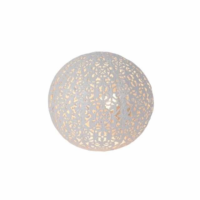 Denne elegante bordlampen skiller seg ut takket være en fin struktur laget av metall. Den runde kulen er omgitt av et nett av grasiøse krøller og motiver. Det skaper et veldig luksuriøst utseende. Bordlampen er perfekt som ekstra stemningsbelysning i stuen, i en nisje i overskapet eller som et dekorativt element på soverommet. Paolo, som er navnet på bordlampen, er enkel å betjene takket være bryteren på ledningen. I et klassisk eller landlig interiør er denne bordlampen veldig vakker, men selv i moderne hjem føles bordlampen perfekt hjemme. Håndbok: https://www.lucide.com/ftp/manual/79110-40-31_manual.pdf