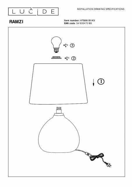 Beroligende farger, naturlige materialer og en elegant form kommer sammen i denne kompakte bordlampen. Med en høyde på 26 centimeter kan denne lampen kalt Ramzi pryde ethvert bord. Du kan bruke den som stemningsfull belysning i tillegg til TV-en eller som leselampe om natten, siden lyset er jevnt fordelt over og under. Du nyter et landlig design laget av eksklusiv keramikk. Du kan slå Ramzi av og på med en bryter i ledningen. Tilgjengelig i flere farger. Håndbok: https://www.lucide.com/ftp/manual/79110-30-30_manual.pdf