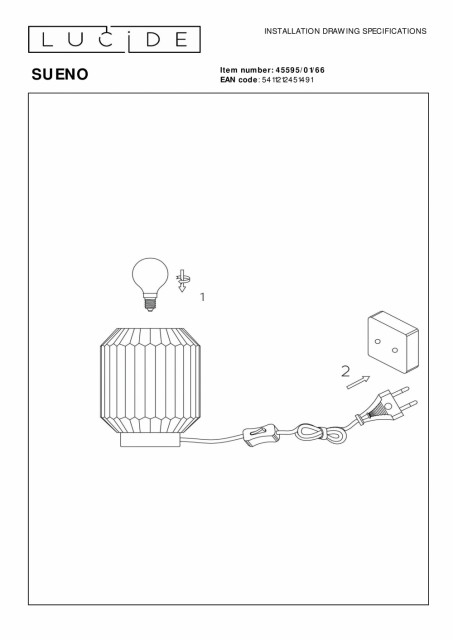 Leter du etter en stilig bordlampe som integreres perfekt i interiøret ditt? Sueno er navnet. Laget med frostet glass av høy kvalitet på en messingbase, bringer den et snev av nostalgi inn i hjemmet ditt. De fine, runde sporene i glasset fullfører bildet. Sueno er knapt 13 centimeter bred og tar opp riktig mengde plass på spisebordet. Den ser også flott ut på et salongbord eller en hylle. Du kan enkelt slå Sueno av og på med bryteren på ledningen. Håndbok: https://www.lucide.com/ftp/manual/79111-36-31_manual.pdf