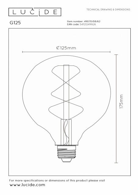 Denne artikkelen gjelder en Filament-pære fra Lucide. Pæren er av høy kvalitet og har lang levetid. Filamentpæren har en E27-montering. Lyspæren har en effekt på 8 watt og en fargetemperatur på 2700 kelvin. Pæren gir en lyseffekt på 900 lumen og har et energimerke på E. Levetiden er opptil 15 000 brukstimer. Håndbok: https://www.lucide.com/ftp/manual/77980-04-30_manual.pdf
