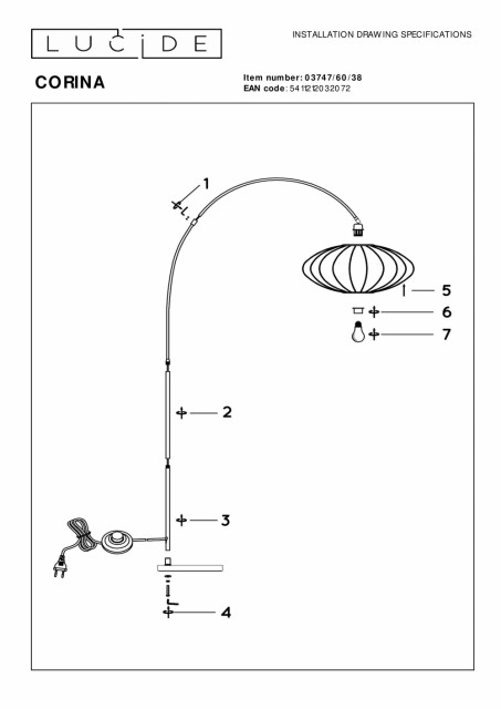 Denne buede gulvlampen er et must for de som setter pris på stil, eleganse og et snev av mystikk. Corina fanger umiddelbart blikket med sin høykvalitets stofflampeskjerm, som har en sjenerøs diameter på 55 centimeter og bader ethvert rom i en koselig, varm glød. Men det er den grasiøst buede basen som virkelig løfter Corina til divastatus og vil få hjertet ditt til å hoppe over et slag ved første øyekast. Kreativ, leken og lidenskapelig, Corina er et fantastisk tillegg til arbeidsrommet eller stuen, som garantert vil fange fantasien og sansene dine. Håndbok: https://www.lucide.com/ftp/manual/03747-60-38_manual.pdf