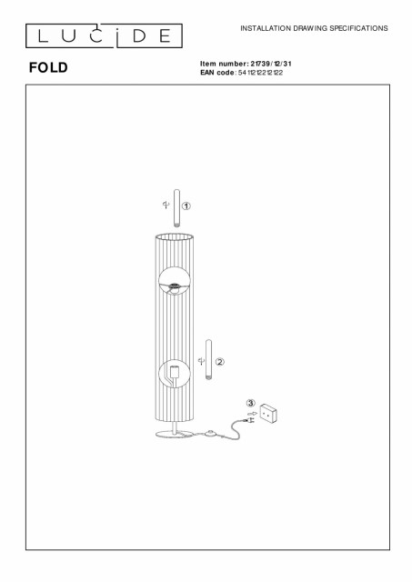 Fold bryter med konvensjonelle designvalg med en overraskende vri. Denne gulvlampen kombinerer en klassisk sylindrisk form med en unik satengfinish. Stofflampeskjermen er detaljert med elegante folder, noe som gir lampen navnet. Legg til ditt valg av LED-pære basert på ønsket intensitet og farge. Det er en lek å slå Fold av og på med bryteren på ledningen. Bare plasser denne stemningsfulle lampen hvor du vil, og nyt umiddelbart stemningen den skaper. Håndbok: https://www.lucide.com/ftp/manual/21739-12-31_manual.pdf