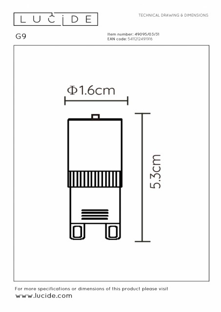 G9-pærer har en særegen to-pinners montering og brukes ofte i små armaturer som vegglamper, taklamper og dekorative lamper. Denne spesielle modellen avgir et varmt hvitt lys med en lysstyrke på 350 lumen, som ofte forbindes med en koselig og innbydende atmosfære - perfekt for stuer og soverom. LED-pærer som denne er mer energieffektive og varer lenger enn tradisjonelle halogenpærer. De er det ideelle valget for de som ønsker å lyse opp hjemmet sitt på en miljøvennlig måte, samtidig som de nyter en avslappet, hjemmekoselig atmosfære. Håndbok: https://www.lucide.com/ftp/manual/77980-01-30_manual.pdf