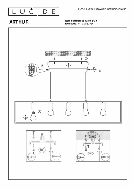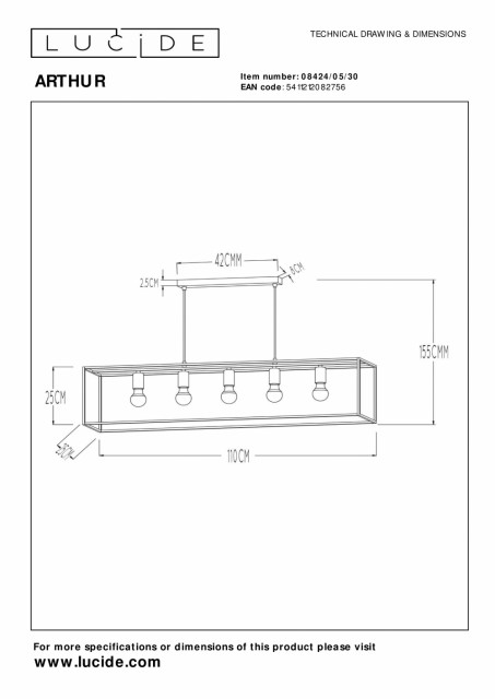 Slanke linjer med elegante materialer. Denne pendellampen kombinerer en stilig ramme i vakkert utført metall med fem lyssokler, med et iøynefallende armatur i kobberfarge. Denne moderne pendellampen er ideell som belysning over spisebordet, i stuen eller som et moderne blikkfang og belysning over kjøkkenøya eller bordet. Den lineære formen passer fantastisk inn i et elegant interiør. Du bestemmer høyden på pendellampen. Akkurat som lyspærene. Et forslag: bruk LED-glødepærer for ekstra bluss. Tilkobling med dimmer er også mulig. Håndbok: https://www.lucide.com/ftp/manual/08424-05-30_manual.pdf