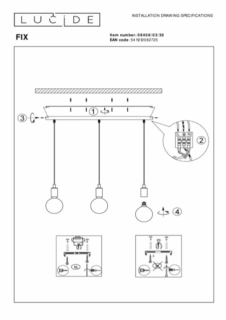 Et veldig pent design med tre synlige lyspunkter. Pendellampe Fix Multiple kombinerer tre ledninger for et elegant, moderne utseende. Hengelampene har ett hovedformål: å skape lys, atmosfære og hygge. Absolutt i kombinasjon med glødepærer er Fix Multiple en seriøs merverdi i din moderne stue. Lyspærene er ikke inkludert, men pendellampen er egnet for bruk med en LED-pære. Og vil du ha en intim atmosfære? Deretter kobler du bare Fix Multiple til en ekstern dimmer. Håndbok: https://www.lucide.com/ftp/manual/08408-03-30_manual.pdf