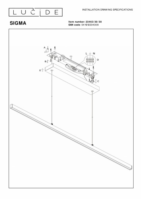 Den tidløse elegansen til Sigma pendellampe er et fredelig punkt i interiøret ditt. På grunn av sitt minimalistiske design i elegant aluminium er denne pendellampen grandios i sin enkelhet. Den ideelle stemningssetteren ved bordet i spisestuen, over en utvidet kjøkkenøy eller for våghalsen ved et langt skrivebordsbord. Utstyrt med en integrert dimbar LED-pære, kan du justere Sigmas lysstyrke uten problemer. Lysekronen kan installeres etter ønske opp til en maksimal høyde på 150 centimeter. Sigma er i underkant av 119 centimeter lang og litt over 8 centimeter bred. Håndbok: https://www.lucide.com/ftp/manual/23463-30-30_manual.pdf