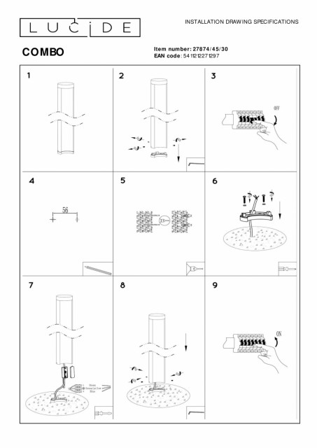 La deg lede i hagen eller langs kjøreturen med Combo. Denne utendørsbelysningen består av et moderne rør i svart. 45 centimeter høy og 9 centimeter i diameter. Med en IP-verdi på 54 motstår den vær og vind. Den integrerte LED-belysningen skaper en indirekte, varm glød. LED-ene har en levetid på minst 30 000 timer - det er en levetid - og et A-energimerke. Håndbok: https://www.lucide.com/ftp/manual/79781-10-30_manual.pdf