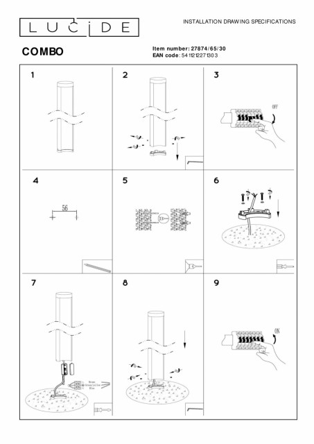 Combo er en stilig lysstolpe for utendørs bruk. Stilig takket være en vakker finish i svart og bruk av indirekte belysning. Ideell for hagen, innkjørselen eller terrassen, takket være en IP-verdi på 54. Combo kombinerer også skjønnhet med hjerne. Den integrerte LED-belysningen, med en levetid på 30 000 timer, er også svært holdbar. Lysstolpen er 65 centimeter høy og gir en varm glød i hagen, kjøreturen eller langs turstier. Kombinasjon veileder deg trinn for trinn. Håndbok: https://www.lucide.com/ftp/manual/79781-05-30_manual.pdf