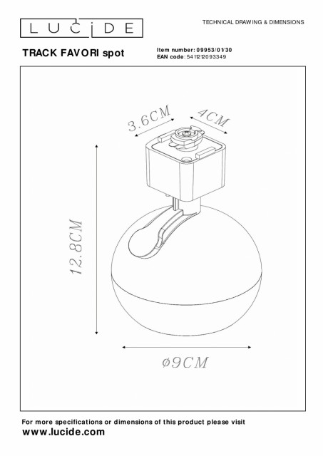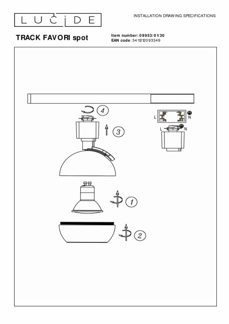 Lys av, spotlights på. Med denne TRACK-modellen følger den kompakte Favori takspotten deg i alle retninger, dit du velger. Med en rund, flat kule gir den et sjarmerende utseende i taket. Perfekt for å fremheve et vakkert kunstverk, tilføre atmosfære til gangen eller ønske deg velkommen inn på soverommet. Du kan enkelt koble Favori til en dimmer for å oppnå den ideelle lysintensiteten når som helst på dagen. Håndbok: https://www.lucide.com/ftp/manual/09953-01-30_manual.pdf