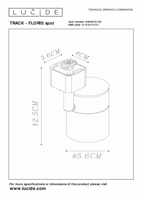 Floris tilbyr en moderne og varm vri på takspotter. Denne TRACK-modellen har 1 lysarmatur og er laget av høykvalitets aluminium. Du kan enkelt rotere og vippe lyset. Dette lar deg generere lys der du trenger det. Koble denne taklampen til en dimmer for å skape ønsket atmosfære i ethvert rom, enten det er et klassisk eller moderne interiør. Håndbok: https://www.lucide.com/ftp/manual/09952-01-30_manual.pdf