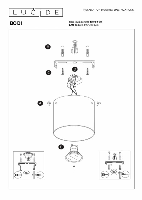 Den monterte spotlampen Bodi round fra Lucide er laget utelukkende av aluminium og har dermed et utseende og følelse av meget høy kvalitet. Med en diameter på 8 cm er den enkel å plassere over en sentral boks. Denne artikkelen egner seg spesielt godt som lys i en liten hall eller toalett. Plassert i serie er Bodi også perfekt å bruke over for eksempel en bar eller en kjøkkenbenk. Bodi er utstyrt med en GU10 høyspenningsarmatur og leveres uten lyskilde. Du kan velge mellom å bruke en dimbar eller ikke-dimbar GU10 LED-spot eller en tradisjonell dimbar GU10 halogenspot. Bodi er tilgjengelig i fargene aluminium, hvit og svart. Håndbok: https://www.lucide.com/ftp/manual/09100-01-30_manual.pdf