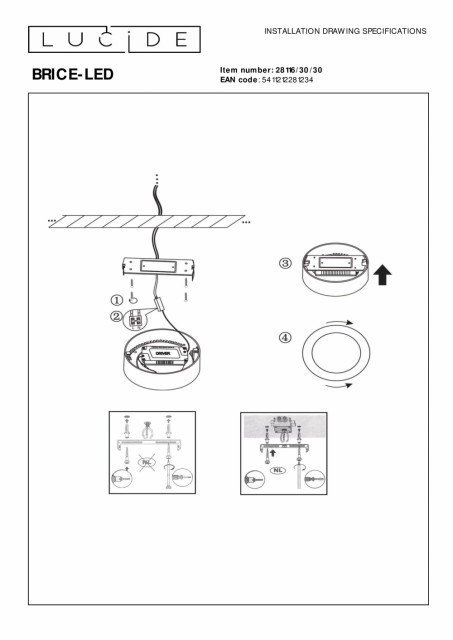 Leter du etter en taklampe av høy kvalitet utstyrt med den nyeste LED-teknologien og et tidløst design? Brice LED-runden fra Lucide er det helt riktige valget for stuen, kjøkkenet, hallen eller toalettet. La oss starte med basen til Brice LED. Hver modell i Brice LED-serien (rund eller firkantet) er utstyrt med kvalitets-LED fra den anerkjente LED-produsenten Epistar. Disse LED-ene har en svært høy lumeneffekt og gir en helt jevn, varmhvit lysfordeling. En stor ekstra fordel er at Brice LED om ønskelig kan dimmes perfekt (dimmer ikke inkludert). Dette gjør at den alltid kan møte belysningsbehovet for øyeblikket. Selve ankeret til Brice LED er laget av 1 stk aluminium og er derfor helt sømløst. Du kan umiddelbart se at Brice LED virkelig er av høyere klasse enn en typisk taklampe. Ren enkelhet og et vakkert design med suveren lysteknologi. Brice LED-runden er tilgjengelig i Ø 12 - 18 - 24 eller 30cm. Håndbok: https://www.lucide.com/ftp/manual/79198-42-61_manual.pdf