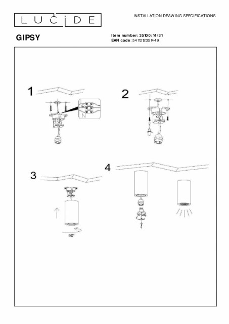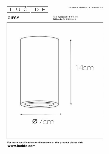Rund og lyd. Denne taklampen som heter Gipsy kombinerer et moderne design med klassisk ytelse, som enkel tilkobling til en dimmer. Det er akkurat det du forventer i et moderne interiør. Denne runde taklampen skiller seg ut, takket være rørformen. Spesielt i denne hvite versjonen er Gipsy et blikkfang i inngangspartiet, soverommet eller stuen. Den totale høyden utgjør 14 centimeter. Takket være GU10-armaturen er det også en lek å bytte pære eller LED. Håndbok: https://www.lucide.com/ftp/manual/79185-30-30_manual.pdf