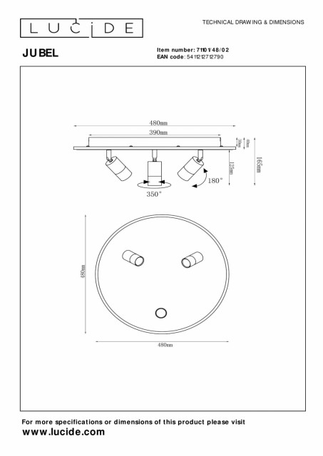 Lys opp bestemte hjørner av rommet ditt med Jubel, en vippbar og justerbar taklampe. Den stilige runde platen støtter tre moderne spotlights, samtidig som den kaster indirekte lys over taket. Jubel er utstyrt med integrerte dimbare LED-lys som avgir en varmhvit glød, og skaper en intim atmosfære med sine fire lyskilder. Denne moderne takarmaturen gir den perfekte prikken over i-en til kjøkkenet eller stuen. Jubel har en diameter på 48 centimeter og kobles til en lysbryter. Håndbok: https://www.lucide.com/ftp/manual/77978-13-02_manual.pdf