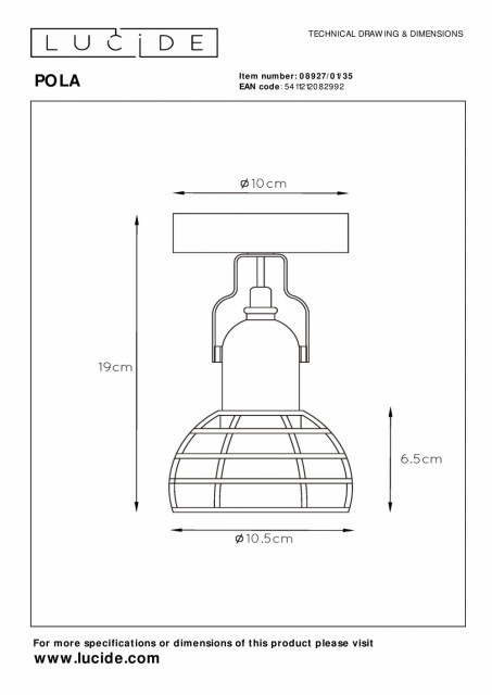 Hvem sier at en veggspotlight alltid må være slank og enkel? Denne moderne spotlighten heter Pola, og den er et skikkelig blikkfang i interiøret ditt. Du kan montere Pola på veggen eller i taket. Dens uendelige muligheter og moderne design med materialer av høy kvalitet gir ikke bare farge til hjemmet ditt, men også elegant utseende og krydrede detaljer. Du kan vippe lyskilden til denne vegg- eller takspotlighten til stedet der du trenger lyset, og om ønskelig kan du også koble Pola til en dimmer. Det vil garantert sette stemningen i alle rom i huset. Trenger du mer lys? Da er versjonen med to lyspærer garantert riktig for deg. Håndbok: https://www.lucide.com/ftp/manual/08927-01-35_manual.pdf