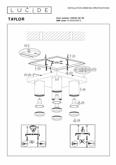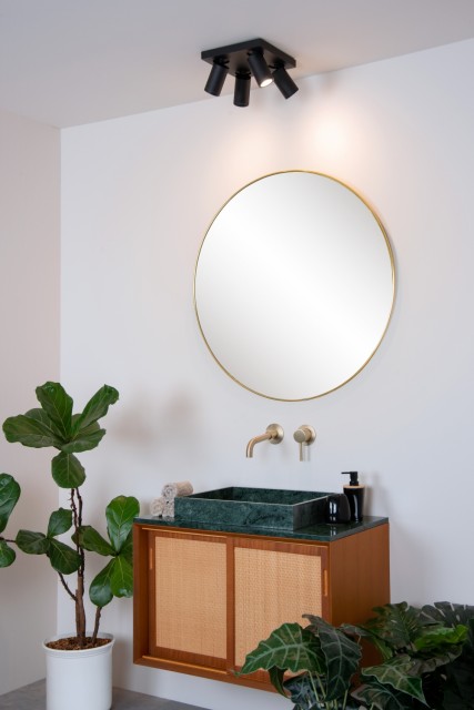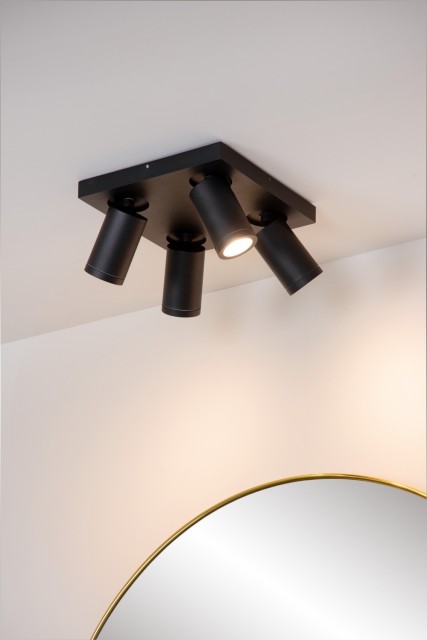 En firkant består av fire helt rette hjørner, den ideelle taklampen, med fire lyspunkter. Spør Taylor. De fire lyspunktene kan hver snu og vippe. Den firkantede utformingen lyser opp hvert hjørne av badet ditt. Lyspærene er inkludert og er utstyrt med svak-til-varm-prinsippet for en varmere fargetemperatur når som helst på dagen. Taylor er spesialdesignet for bad, slik at du kan henge den og bruke den trygt. Med høykvalitets aluminium og sylindriske spotter har denne baderomslampen alt du trenger for å gi badet ditt et moderne preg. Håndbok: https://www.lucide.com/ftp/manual/09930-20-30_manual.pdf