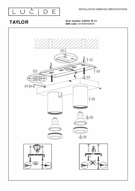 Hvorfor er det en god idé å velge en baderomslampe med to lyspunkter? Taylor lister opp fordelene for deg. Bokstavelig talt, fordi taklampen har to dreie- og vippespotlights, festet ved siden av hverandre direkte på takplaten. I tillegg leveres Taylor med dimbare lyspærer, utstyrt med dim-til-varm-teknologi. Dette lar deg stille inn lyset til ønsket fargetemperatur. Ideell for litt varme under kalde vintermorgener. Taylor er grundig testet og spesialdesignet for sikker bruk på badet. Aluminium av høy kvalitet og de sylindriske spottene gir denne taklampen sitt moderne utseende. Håndbok: https://www.lucide.com/ftp/manual/09930-10-31_manual.pdf