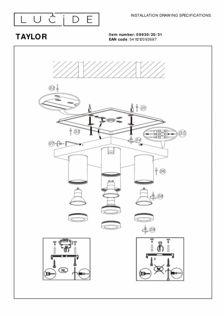 En firkant består av fire helt rette hjørner, den ideelle taklampen, med fire lyspunkter. Spør Taylor. De fire lyspunktene kan hver snu og vippe. Den firkantede utformingen lyser opp hvert hjørne av badet ditt. Lyspærene er inkludert og er utstyrt med svak-til-varm-prinsippet for en varmere fargetemperatur når som helst på dagen. Taylor er spesialdesignet for bad, slik at du kan henge den og bruke den trygt. Med høykvalitets aluminium og sylindriske spotter har denne baderomslampen alt du trenger for å gi badet ditt et moderne preg. Håndbok: https://www.lucide.com/ftp/manual/09930-20-31_manual.pdf