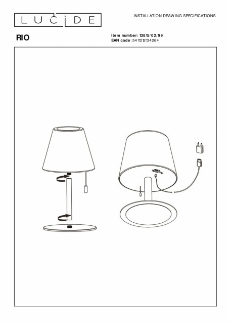 Du liker også kvalitetsbelysning i et originalt design utendørs. Rio passer perfekt inn i den beskrivelsen. Denne bordlampen utstråler i formell enkelhet og klarer likevel å tilby mange muligheter. For eksempel er den integrerte LED-pæren dimbar og tilbyr RGB LED-belysning. Rød, blå eller grønn? Du velger. Betjeningen via en trekkbryter gir designet et ekstra lekent preg. Rio er 29,2 centimeter høy og er laget av høykvalitets PVC, for et holdbart resultat. Håndbok: https://www.lucide.com/ftp/manual/13815-02-99_manual.pdf