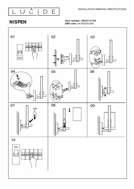 Kombiner et rustikt preg med moderne former og stilig utebelysning, og du får Nispen. Denne vegglampen for utendørs er ren eleganse takket være en blanding av high-end metall med slanke linjer og de feminine formene på glassrøret som beskytter lyspæren. Selvfølgelig kobles denne utendørsbelysningen enkelt til en ekstern dimmer. Den sitter perfekt ved inngangsdøren eller ved siden av terrassen din, eller kan fremheve en frittliggende fasade. Håndbok: https://www.lucide.com/ftp/manual/79187-01-02_manual.pdf