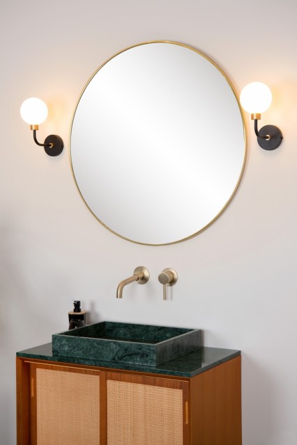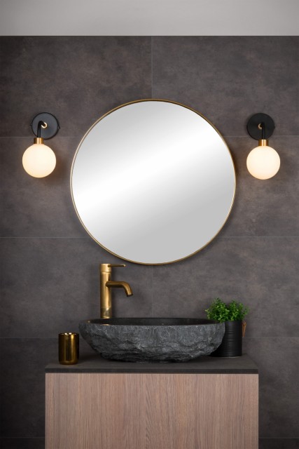 Med Berend ved din side starter du hver dag på riktig fot. Og spesielt når du plasserer denne vegglampen ved siden av baderomsspeilet. Den klassiske designen har noen moderne innslag. Bare se på aksentene i messing i kombinasjon med det svarte stålet. Den sfæriske nyansen og den elegante designen minner om tidligere tiders staselige herskapshus. Berend er en merverdi på ethvert bad. Vegglampen er spesielt designet for sikker bruk i fuktige rom. Det betyr ikke at du ikke kan plassere Berend i en staselig sal, i kombinasjon med et vakkert kunstverk eller monumentalt speil. Visste du forresten at du enkelt kan koble Berend til en dimmer? Dermed bestemmer du umiddelbart den rette atmosfæren. På badet eller i et annet rom. Håndbok: https://www.lucide.com/ftp/manual/79185-80-30_manual.pdf