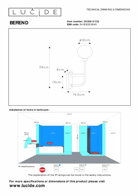 Skap følelsen av et elegant herskapshus på ditt eget bad. Og du kan gjøre det ved hjelp av denne vegglampen med navnet Berend. Fordi den utstråler luksus: fra aksentene i messing og bruken av høykvalitetsstål til den sfæriske lampeskjermen. Hver dag starter optimalt med Berend ved siden av baderomsspeilet. Fordi denne vegglampen er spesielt designet for sikker bruk på badet. Du kan også enkelt koble den til en dimmer. Er du ikke klar for sterke lysstråler om morgenen? Skru lyset litt ned. Du vil forlate badet i godt humør. Garantert! Håndbok: https://www.lucide.com/ftp/manual/79185-80-02_manual.pdf