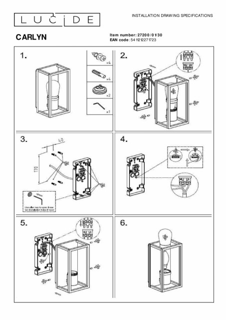Speil, speil på veggen. Hvem er den vakreste av alle? Vi skal tie om svaret, men vi kan fortelle deg hvilken vegglampe som ser vakreste ut på badet ditt: Carlyn. Den er spesielt designet for sikker bruk på bad. Den rektangulære aluminiumsrammen gjør den holdbar og lite vedlikehold. Dette lange, smale rektangelet på 25 x 12,5 centimeter gir et varmt preg til det moderne badet ditt. Hvis du bruker LED, kan du nyte ekstra varmt, hvitt lys. Lyskilden din er beskyttet av et glass og en stilig kapsel. Etter å ha montert den på veggen og koblet den til en bryter, er den nye vegglampen klar til bruk. Håndbok: https://www.lucide.com/ftp/manual/27200-01-30_manual.pdf